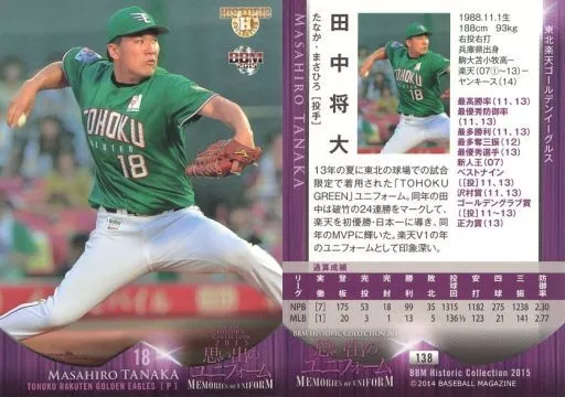 BBM / Regular Card / Tohoku Rakuten Golden Eagles / BBM2015 Historic Collection Memory Uniform 138 [Regular Card] : Masahiro Tanaka