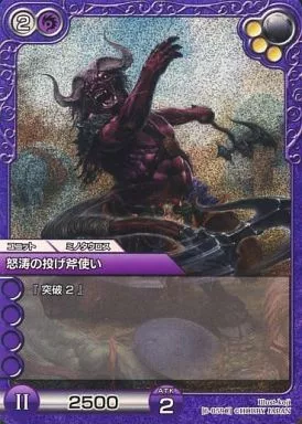 Japanese title: ラストクロニクル/C/ユニット/紫/ブースターパック第6弾「聖暦の覇者」 6-059C[C]:(プレミアム)怒涛の投げ斧使い