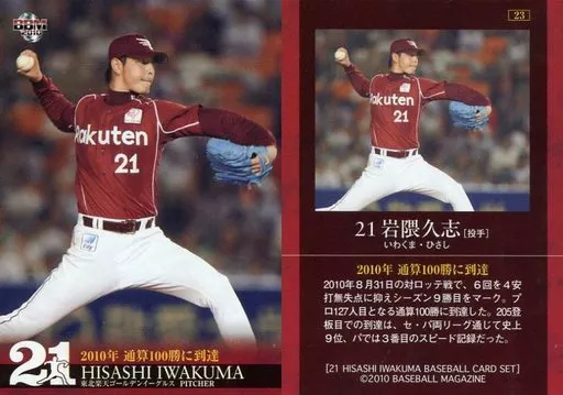 Japanese title: BBM/レギュラーカード/-/東北楽天ゴールデンイーグルス/BBM2010 岩隈久志カードセット「21」 23 [レギュラーカード] : 2010年通算100勝に到達
