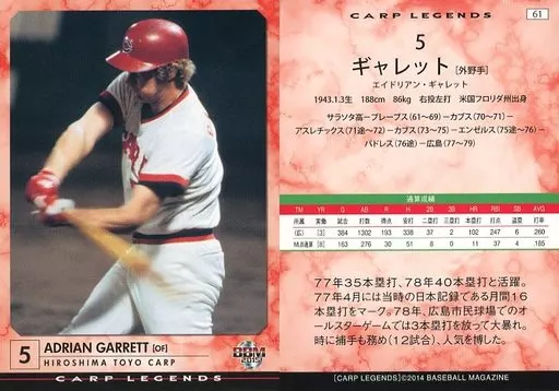 Japanese title: BBM/レギュラーカード/-/広島東洋カープ/BBM2015 カープ・レジェンド 61 [レギュラーカード] : ギャレット