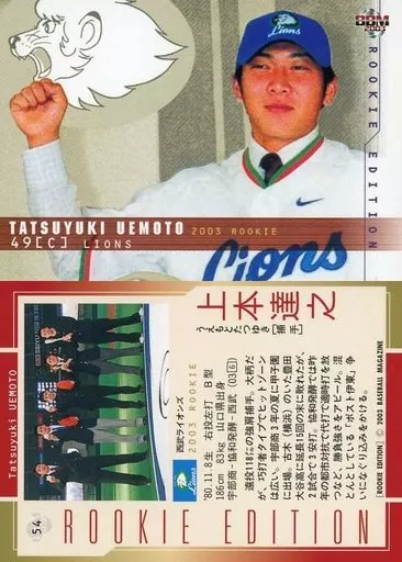 Japanese title: BBM/レギュラーカード/西武ライオンズ/BBM2003 ルーキーエディション 054 [レギュラーカード] : 上本達之