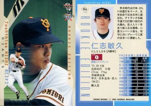 BBM / Regular Card / Team Regular / Yomiuri Giants / BBM2003 RookIe Edition 094 [Regular Card] : Toshihisa Nishi