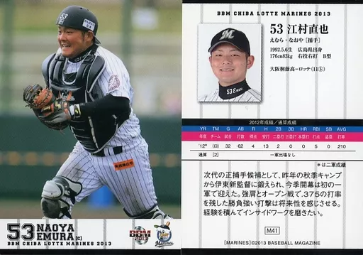 Japanese title: BBM/レギュラーカード/BBM2013 千葉ロッテマリーンズ M41 [レギュラーカード] : 江村直也