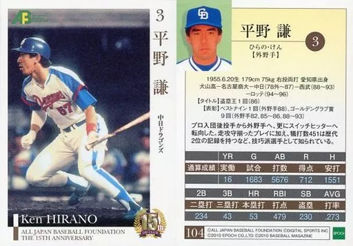 Sports / Regular Card / Chunichi Dragons / Nippon Professional Baseball OB Club 15 th Anniversary Commemorative Card Set 2 104 [Regular Card] : Ken Hirano