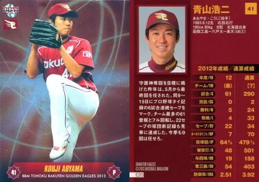 Japanese title: BBM/レギュラーカード/BBM2013 東北楽天ゴールデンイーグルス E20 [レギュラーカード] : 青山浩二(パラレル版)