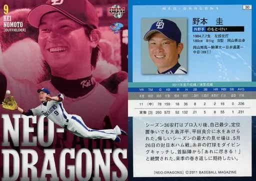 Japanese title: BBM/レギュラーカード/BBM2011 中日ドラゴンズ「NEO-DRAGONS」 30 [レギュラーカード] : 野本圭