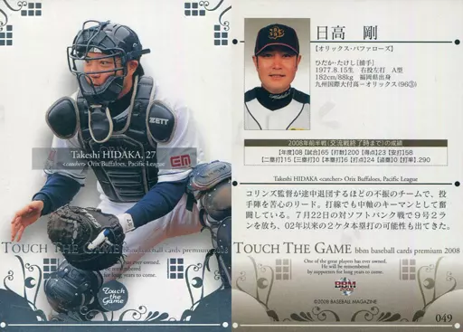 Japanese title: BBM/レギュラーカード/オリックス・バファローズ/BBM2008 Touch the game 049 [レギュラーカード] : 日高剛