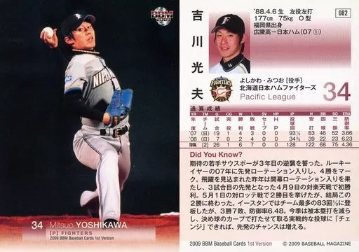 Japanese title: BBM/レギュラーカード/北海道日本ハムファイターズ/BBM2009 ベースボールカード 1stバージョン 082 [レギュラーカード] : 吉川光夫