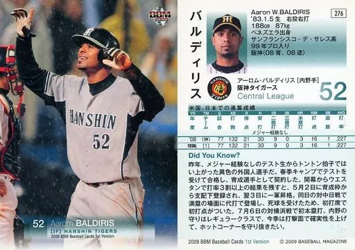 Japanese title: BBM/レギュラーカード/阪神タイガース/BBM2009 ベースボールカード 1stバージョン 276 [レギュラーカード] : バルディリス