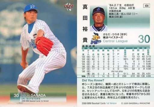 BBM / Regular Card / Yokohama Bay Stars / BBM2009 Baseball Card 1 st Version 406 [Regular Card] : Hiroki Sanada