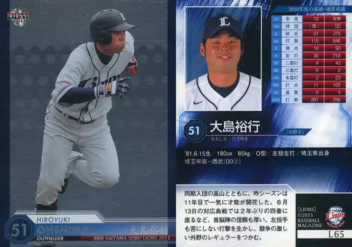 BBM / Regular / BBM2011 Saitama Seibu Lions L65 [Regular] : Hiroyuki Oshima (Kira Parallel version)