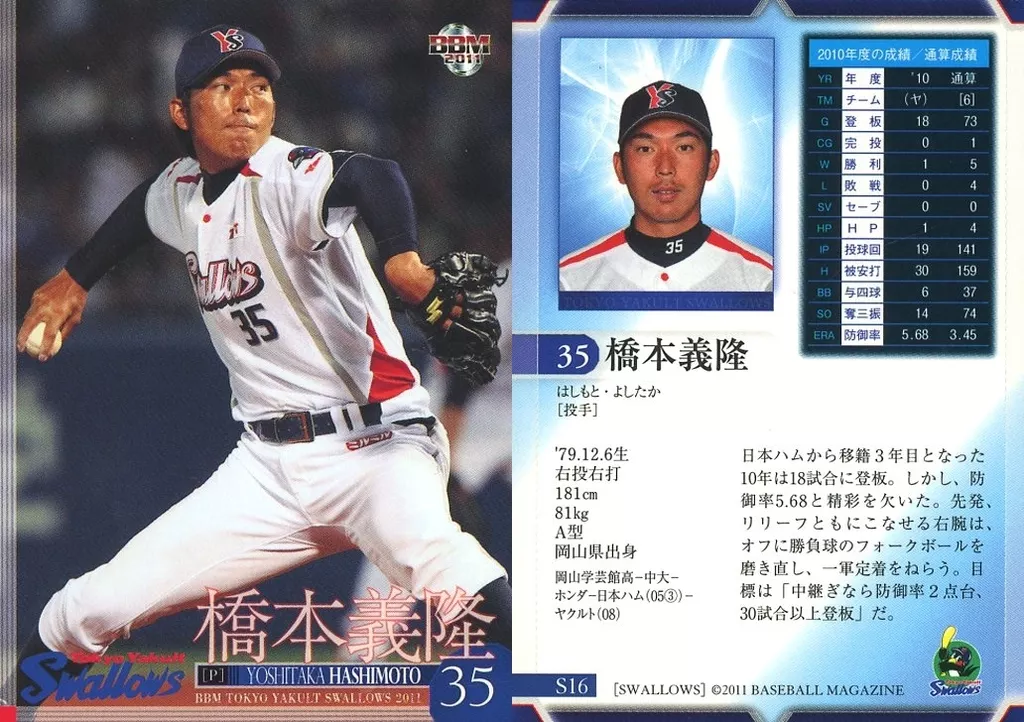 Japanese title: BBM/レギュラー/BBM2011 東京ヤクルトスワローズ S16[レギュラー]:橋本義隆