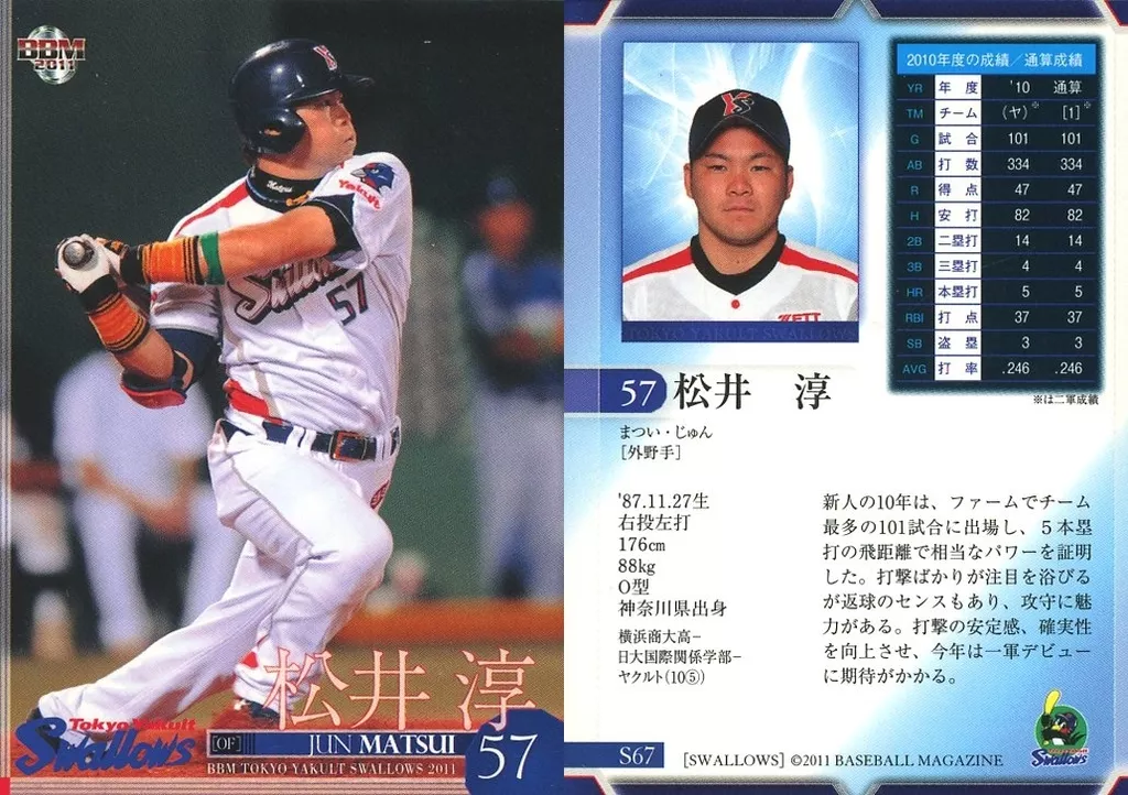 Japanese title: BBM/レギュラー/BBM2011 東京ヤクルトスワローズ S67[レギュラー]:松井淳