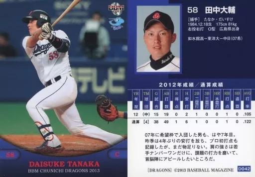 Japanese title: BBM/レギュラー/BBM2013 中日ドラゴンズ D042[レギュラー]:田中大輔