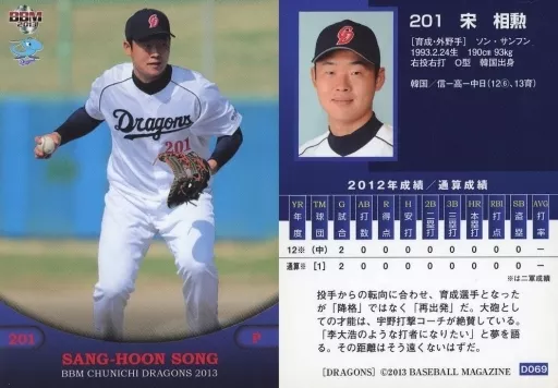 Japanese title: BBM/レギュラー/BBM2013 中日ドラゴンズ D069[レギュラー]:宋相勲
