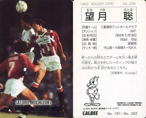 Japanese title: スポーツ/Jリーグ選手カード/Jリーグチップス1992~1993/浦和レッドダイヤモンズ 208 [Jリーグ選手カード] : 望月聡
