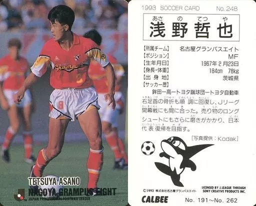 Sports / J League Player Card / J League Chips 1992 ~ 1993 / Nagoya Grampus 248 [J-League player card] : Tetsuya Asano