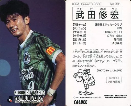 Japanese title: スポーツ/Jリーグ選手カード/Jリーグチップス1992~1993/ヴェルディ川崎 331 [Jリーグ選手カード] : 武田修宏