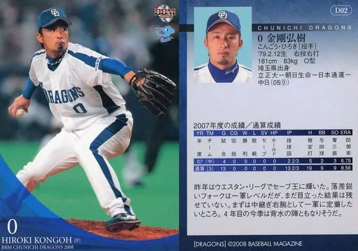 BBM / Regular / BBM2008 Chunichi Dragons D02 [Regular] : Hiroki Kongo
