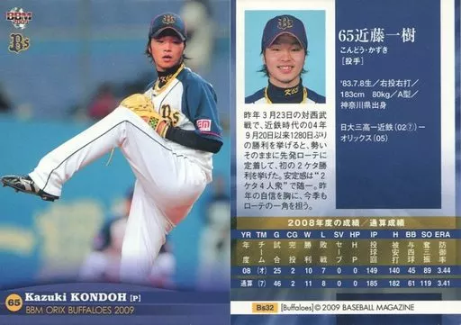 Japanese title: BBM/レギュラー/BBM2009 オリックス・バファローズ Bs32[レギュラー]:近藤一樹