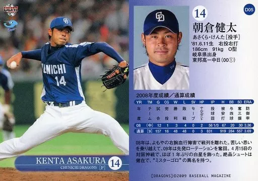 Japanese title: BBM/レギュラー/BBM2009 中日ドラゴンズ D05[レギュラー]:朝倉健太