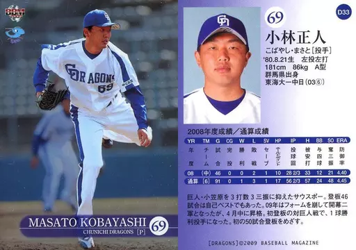 BBM / Regular / BBM2009 Chunichi Dragons D33 [Regular] : Masato Kobayashi (Kira parallel version)