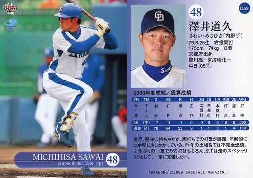 BBM / Regular / BBM2009 Chunichi Dragons D53 [Regular] : Michihisa Sawai
