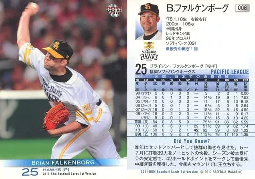 BBM / Regular / Fukuoka Soft Bank Hawks / BBM2011 Baseball Card 1 st Version 006 Regular : Falken Borg