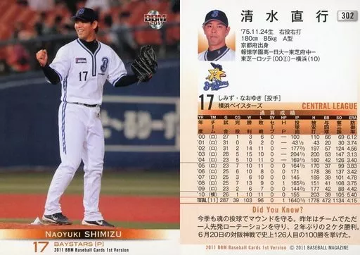 BBM / Regular / Yokohama Bay Stars / BBM2011 Baseball Card 1 st Version 302 [Regular] : Naoyuki Shimizu
