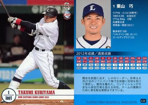 Japanese title: BBM/レギュラー/BBM2013 埼玉西武ライオンズ L51[レギュラー]:栗山巧