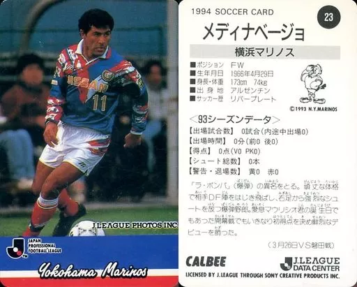 Japanese title: スポーツ/Jリーグ選手カード/Jリーグチップス1994第1弾/横浜マリノス 23 [Jリーグ選手カード] : メディナベージョ