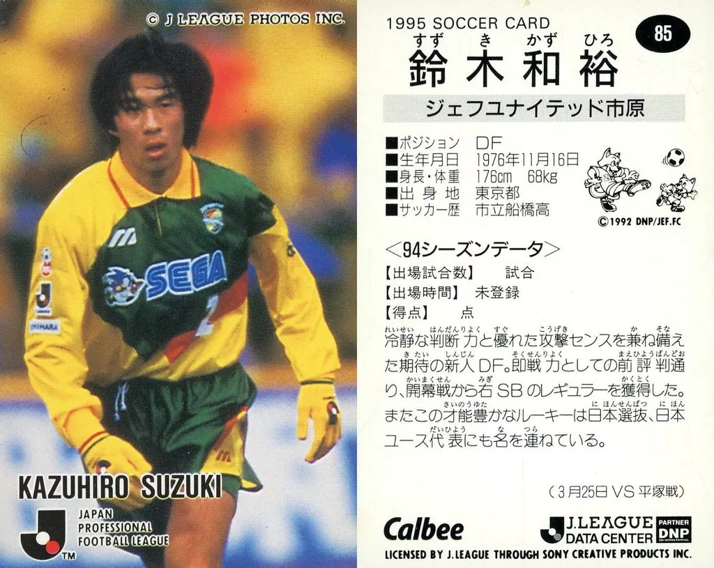 Sports / J League Player Card / J League Chips 1995 / Jeff United Ichihara 85 [J-League player card] : Kazuhiro Suzuki