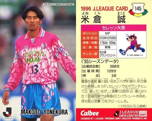 Japanese title: スポーツ/Jリーグ選手カード/Jリーグチップス1996/セレッソ大阪 145 [Jリーグ選手カード] : 米倉 誠