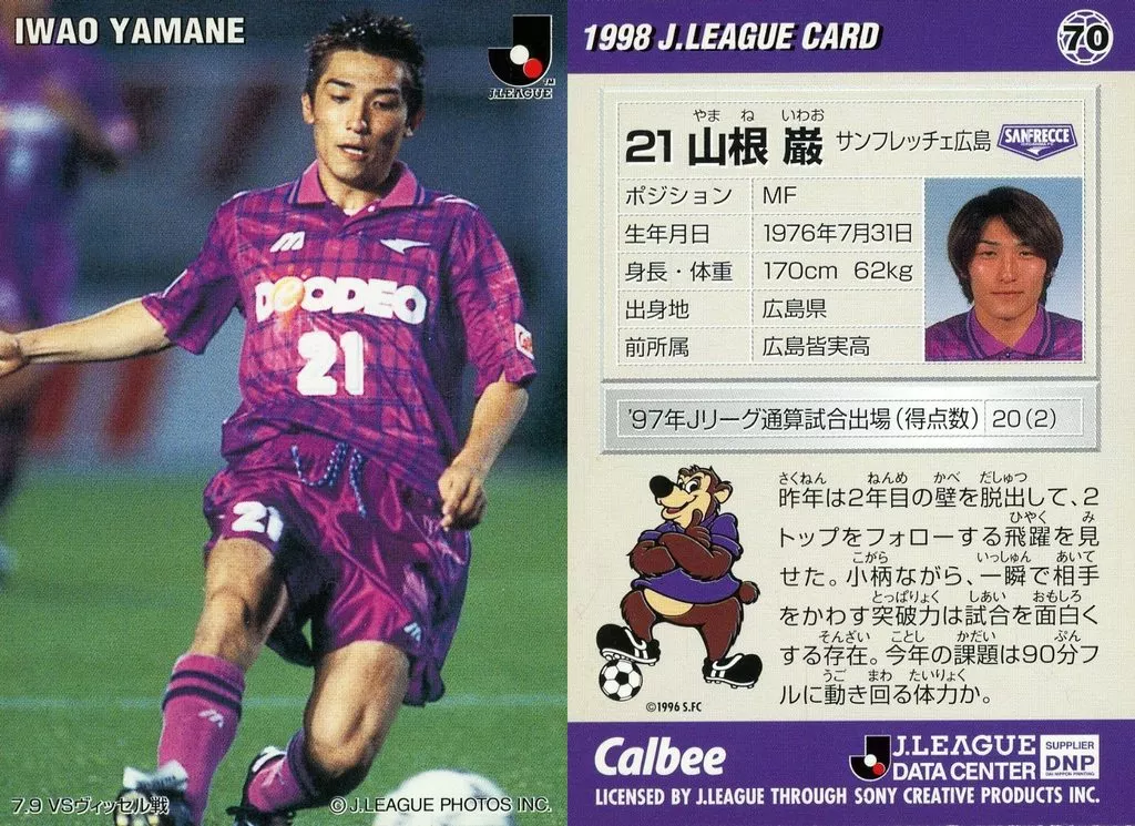 Sports / J League Player Card / J League Chips 1998 / Sanfrecce Hiroshima 70 [J-League player card] : Iwao Yamane