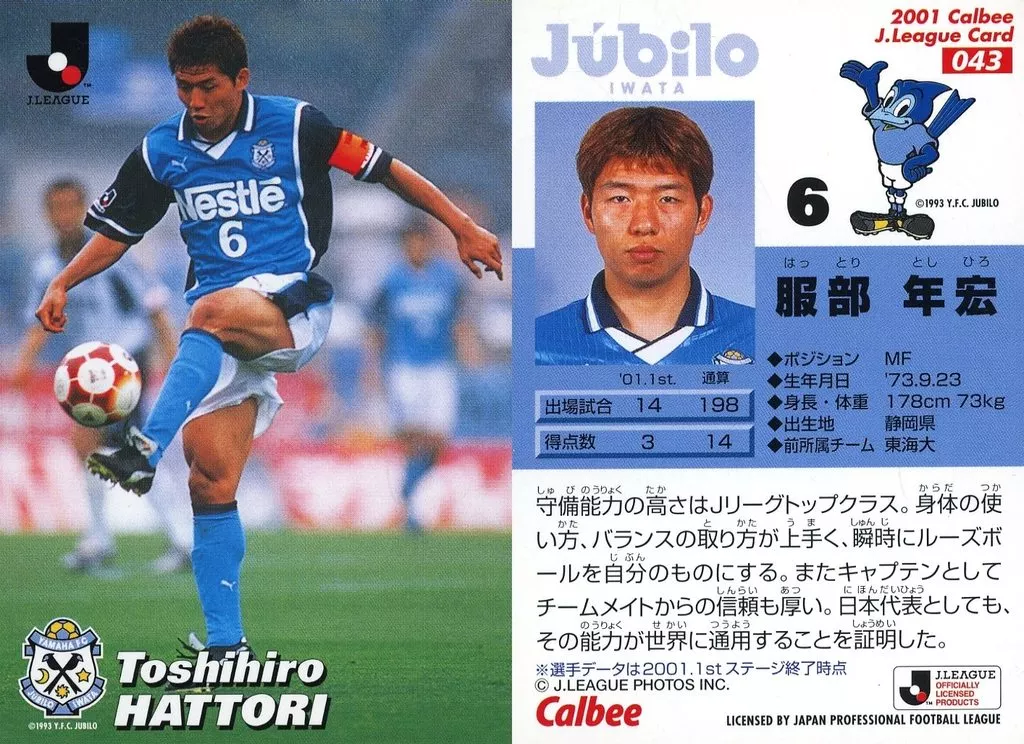 Sports / J. League Player Card / J. League Chips 2001 Series 1 / Júbilo Iwata 43 [J-League player card] : Toshihiro Hattori