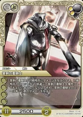 Japanese title: ラストクロニクル/C/ユニット/白/ブースターパック第4弾「救世の交響詩」 4-011[C]:誓剣の重騎士