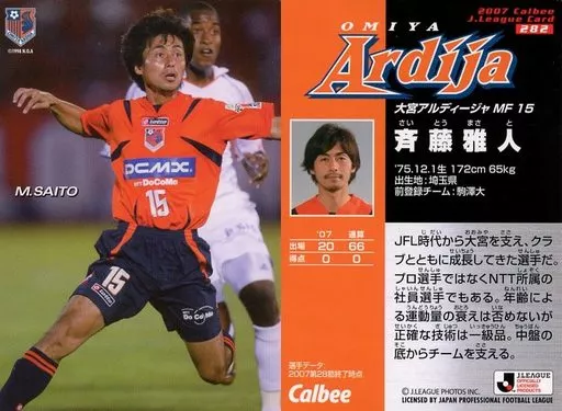 Japanese title: スポーツ/レギュラーカード/カルビーJリーグチップス 2007 第3弾/大宮アルディージャ 282 [レギュラーカード] : 斉藤 雅人