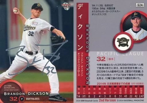 Japanese title: BBM/レギュラーカード/オリックス・バファローズ/BBM2014 ベースボールカード 2ndバージョン 524 [レギュラーカード] : ディクソン(銀箔サイン入り)