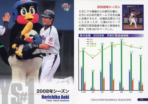 BBM / Regular Card / BBM2010 Ys #1 Yakult Swallows Back No. 1 Genealogy 11 [Regular Card] : Norichika Aoki