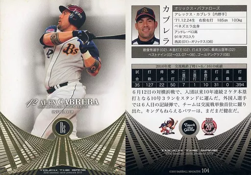 Japanese title: BBM/BBM2010 Touch the game(タッチ・ザ・ゲーム) 104 [レギュラーカード] : カブレラ