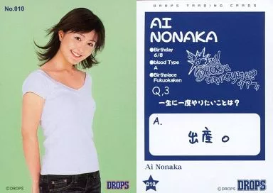 Japanese title: コレクションカード(女性)/DROPS TRADING CARDS LIVE TOUR 2004 センセイ! DROPS はおやつに入りますか !? No..010 : DROPS/野中藍/DROPS TRADING CARDS LIVE TOUR 2004 センセイ! DROPS はおやつに入りますか !?