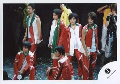 Japanese title: 生写真(ジャニーズ)/アイドル/関西ジャニーズJr. 関西ジャニーズJr./集合(6人)/横型・ライブフォト・全身・衣装赤白緑・竹本藤井しゃがみ・目線左/公式生写真