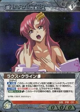 Japanese title: ガンダムウォー/S/白/第5弾EXブースターパック「猛火の再来」 05C/CH WT050S[S]:ラクス・クライン(テキスト:必ず帰ってきます。-)
