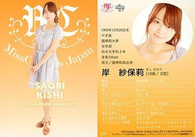 Japanese title: BBM/レギュラー/BBMミスキャンパス 2013 074[レギュラー]:岸紗保莉
