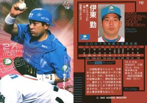 Japanese title: BBM/レギュラーカード/西武ライオンズ/BBM2002 ベースボールカード プレビュー P82 [レギュラーカード] : 伊東勤