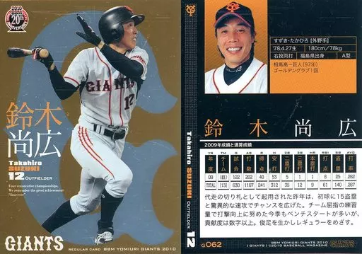 Japanese title: BBM/レギュラーカード/BBM2010 読売ジャイアンツ G062 [レギュラーカード] : 鈴木尚広(キラパラレル版)