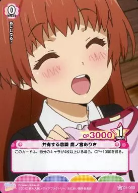 Japanese title: プリズムコネクト/C/-/赤/ブースターパック お兄ちゃんだけど愛さえあれば 関係ないよねっ 01-069[C]:共有する意識 鷹ノ宮ありさ