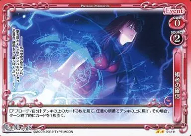 Japanese title: プレシャスメモリーズ/UC/イベント/赤/魔法使いの夜 ブースターパック 01-111[UC]:術者の確信