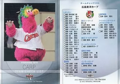 Japanese title: BBM/チームチェックリスト/2013 BBM ベースボールカード 1stバージョン 401[チームチェックリスト]:広島東洋カープ