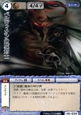 Japanese title: モンスターコレクション/稀/ユニット/ブースターパック アポカリプスの魔剣 4D-059[稀]:ベルヴォインの魔剣士
